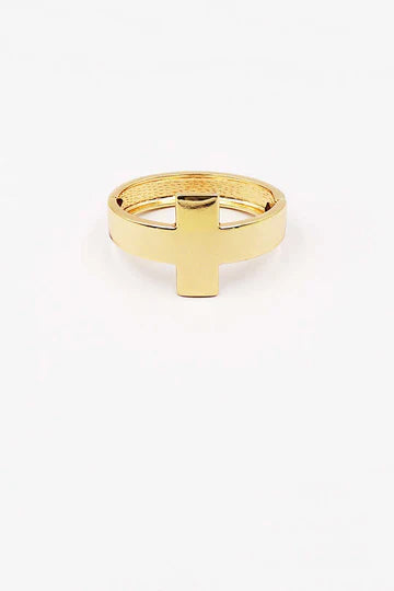 Hammered Silver with Gold Cross Accents Stretch Bracelets