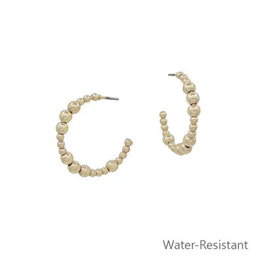 Water Resistant Gold Graduated Beaded 1" Hoop Earring