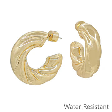 Water Resistant Hammered Gold Chunky 1.25" Hoop Earring
