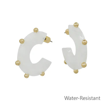 Water Resistant White Acrylic with Gold Studded Accents 1.25" Hoop Earring