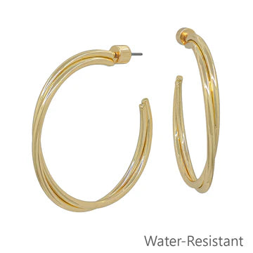 Water Resistant Thick Gold Spiral 1.5" Hoop Earring