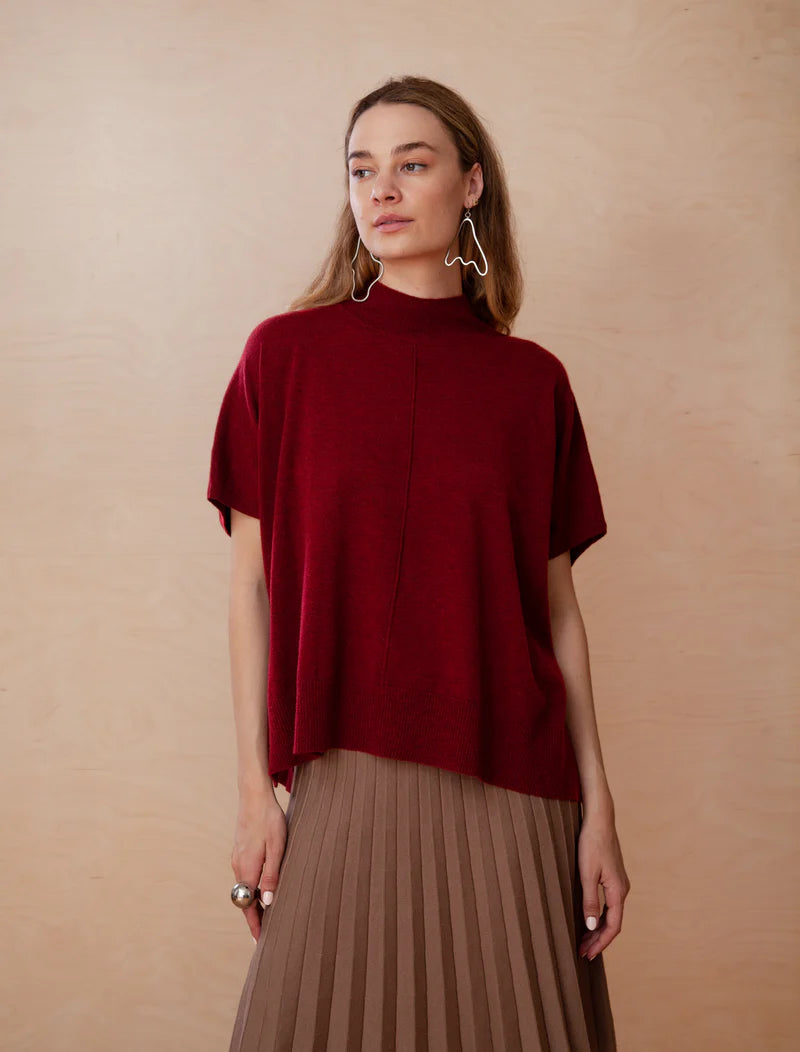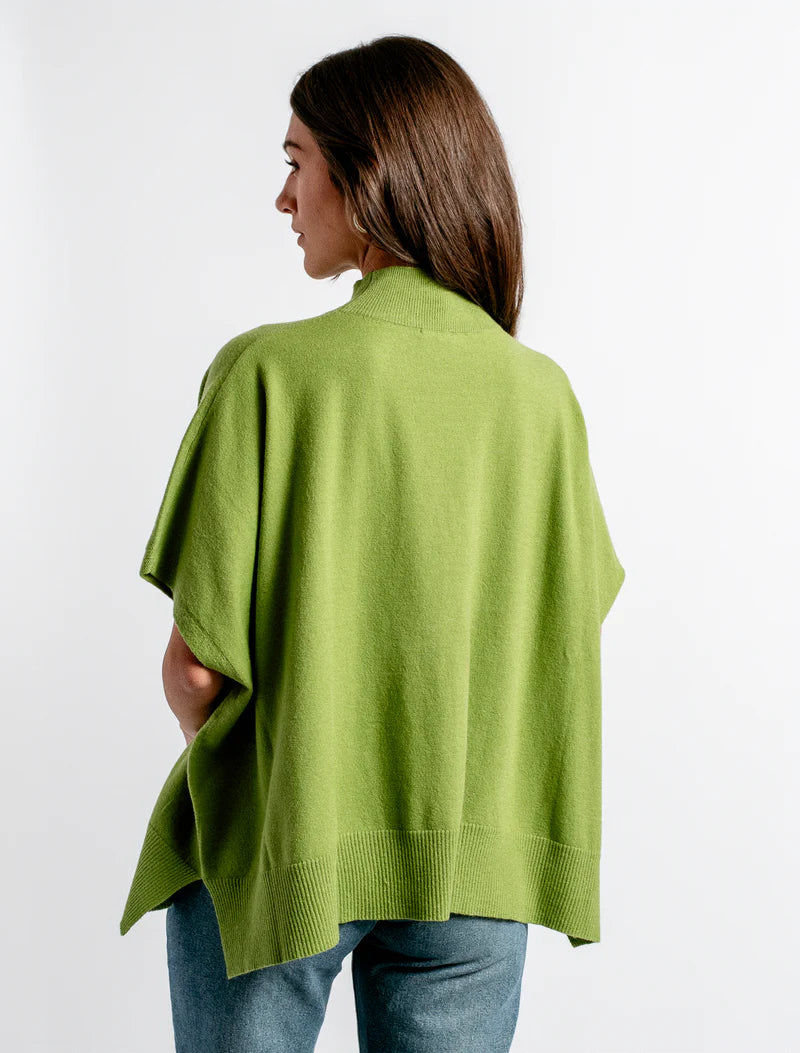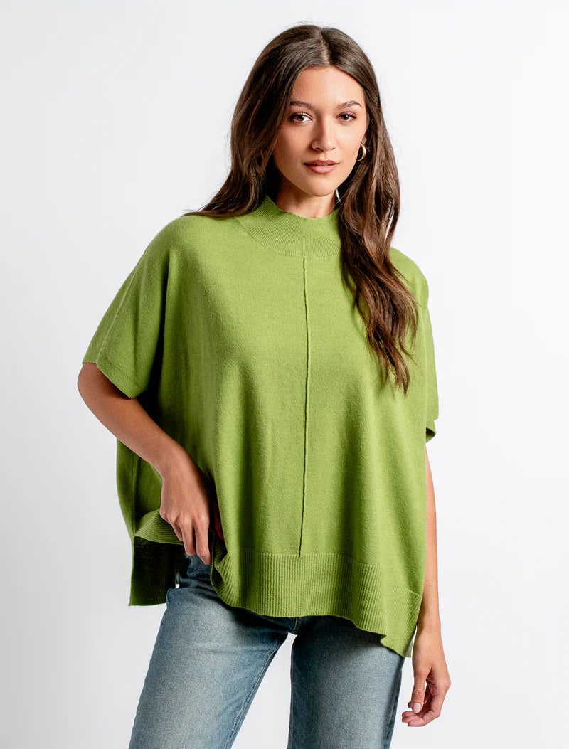 Details: • Oversized turtleneck silhouette for a relaxed, cozy fit • Center front seam detail adds modern structure • Soft, mid-weight knit for warmth and comfort • Designed to layer easily over long-sleeve tops for extra flair