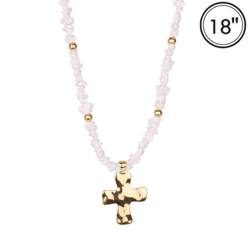 Natural Stone with Shiny Gold Cross 16"-18" Necklace