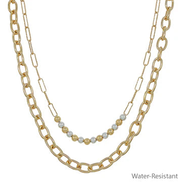 Gold Chain with 2MM Silver and Gold Beaded Layered 16"-18" Necklace