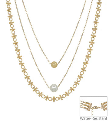 4MM Gold and Pearl Triple Layered 16"-18" Necklace