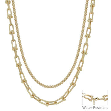 Double Layered Gold Beaded and Chain Multi Way 16"-18" Necklace
