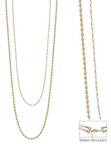 2MM Beaded and Chain Layered 16"-18" Necklace