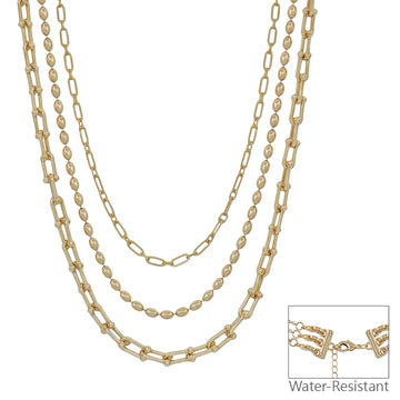 Triple Layered Gold Beaded and Chain Multi Way 16"-18" Necklace
