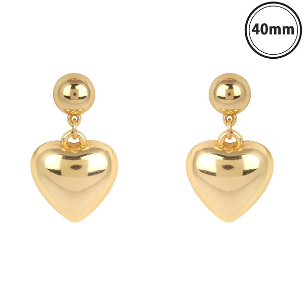 Gold Ball and Puffy Heart 1.25" Earring