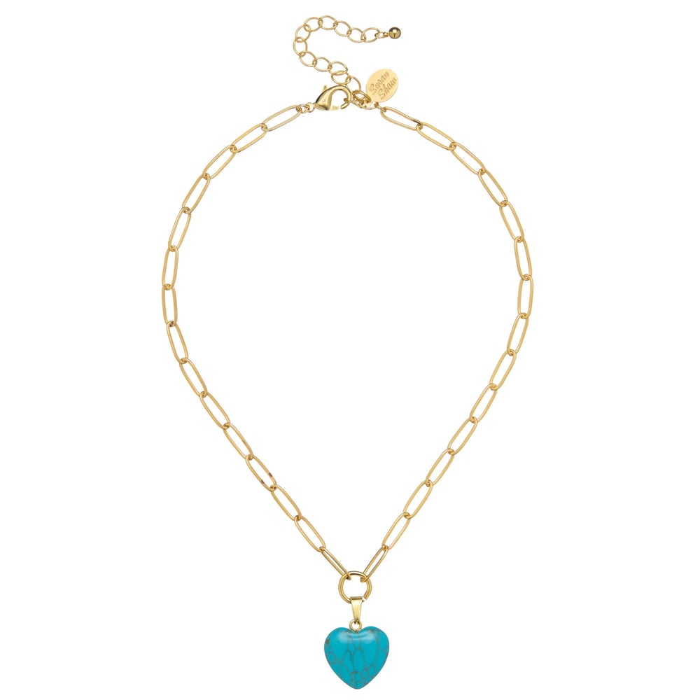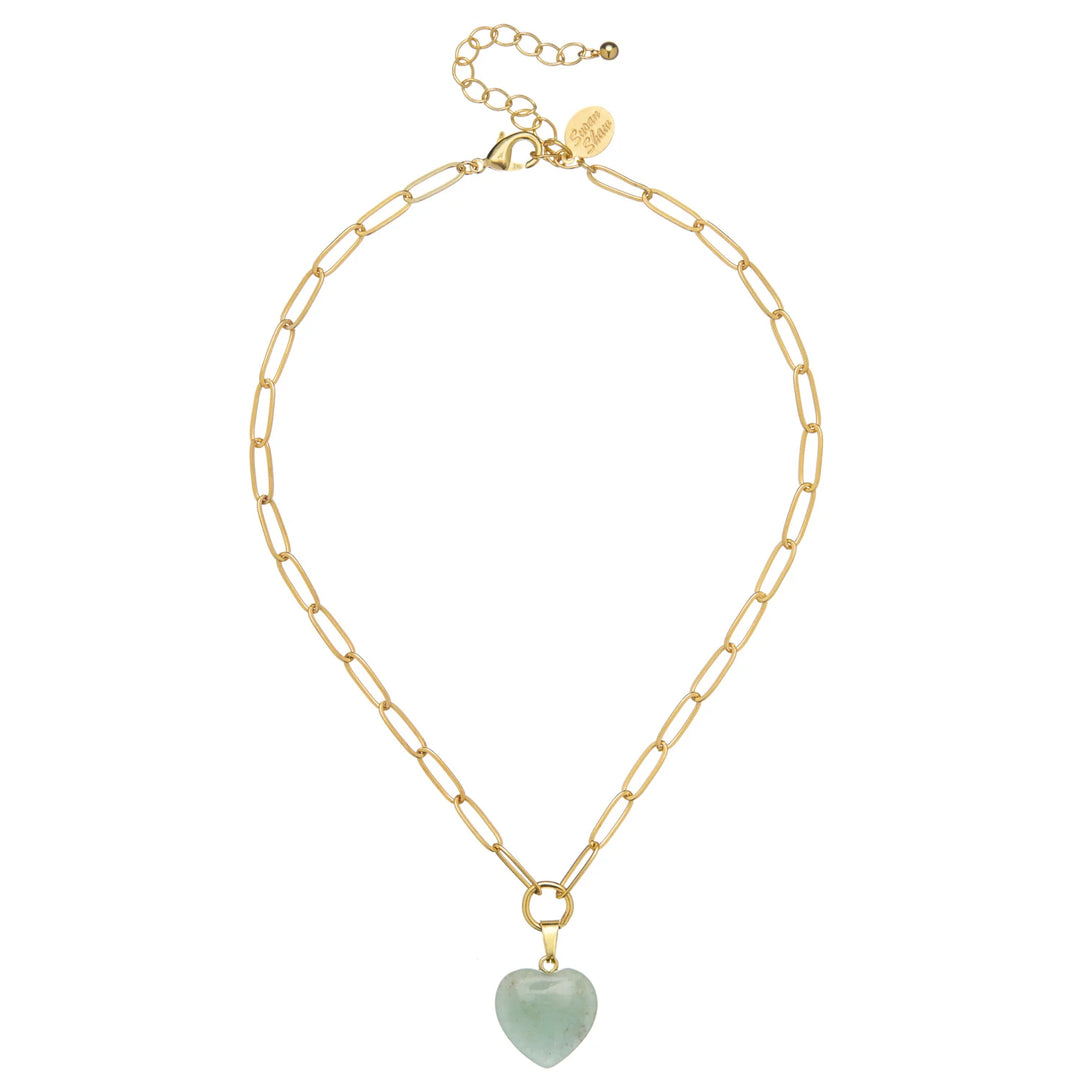 Gold Chain with Natural Stone Heart 42" Necklace
